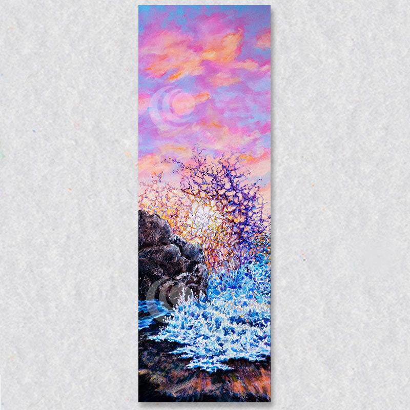 When I saw the gentle softness of the clouds in my backyard one morning it inspired me to combine that with the joyful splashing of waves against rocks as they make their own music welcoming the day.